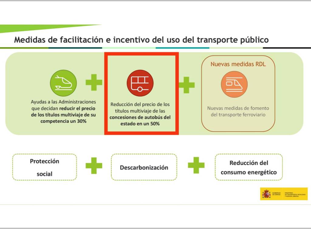 Esta ruta no figura entre las 42 interurbanas a las que el Ministerio de Transportes, Movilidad y Agenda Urbana rebaja el precio en un 50% y hemos registrado escrito a alcaldía para solicitarlo oficialmente.