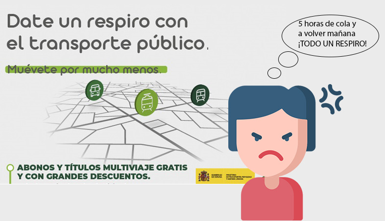 Viendo esta campaña del Ministerio: “DATE UN RESPIRO CON EL TRANSPORTE PÚBLICO” Muévete por mucho menos” y como se está realizando, por lo menos en esta línea, parece una tomadura de pelo.