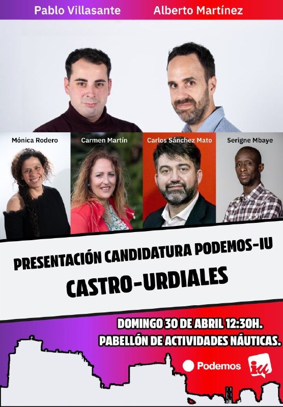 Además contaremos con la presencia desde Madrid, de Serigne Mbaye y Carlos Sánchez Mato y como no, de Mónica Rodero, candidata a la Presidencia del Gobierno de Cantabria y de Carmen Martín, Portavoz y candidata de Izquierda Unida al Parlamento de Cantabria. ![]()