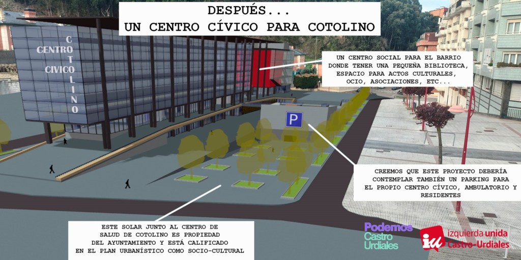 • Proponemos la construcción de un centro cívico en el terreno junto al ambulatorio de Cotolino.