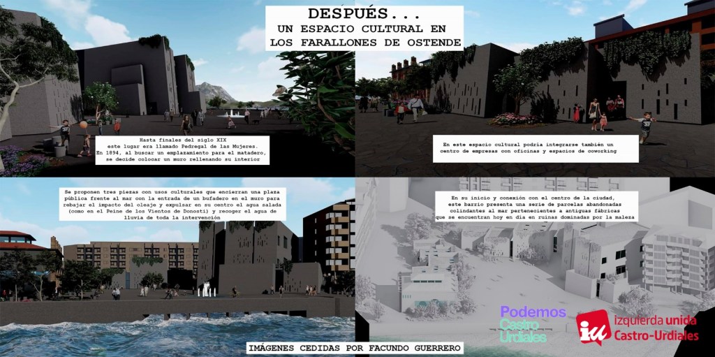 • Proponemos aprovechar las parcelas abandonadas colindantes al mar de Ostende para crear un espacio cultural en el barrio.