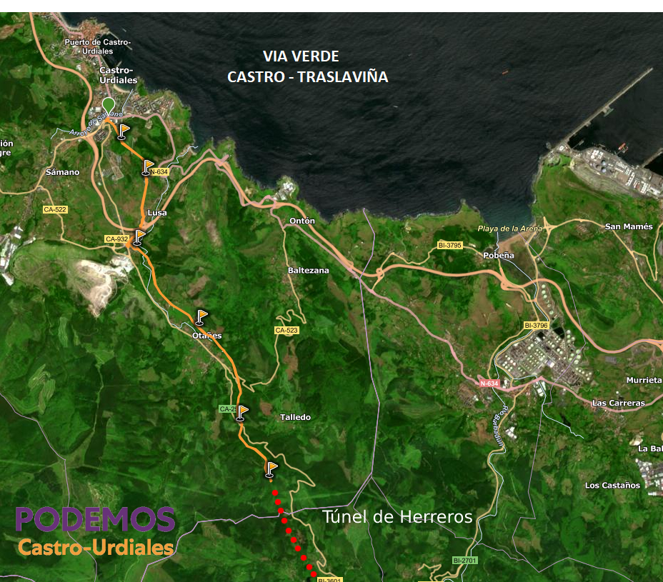 En marzo de 2021 Podemos Castro, Cantabria y Elkarrekin Podemos IU nos unimos para proponer la recuperación del Túnel de Herreros y habilitarlo como vía verde transitable a pie o bicicleta y unirlo a las vías verdes ya existentes a ambos lados del túnel; la de los Montes de Hierro, en Bizkaia, y la de Castro-Traslaviña, en Cantabria, esta iniciativa fue registrada en las Juntas Generales de Bizkaia, en el Parlamento de Cantabria y en el Ayuntamiento de Castro Urdiales.